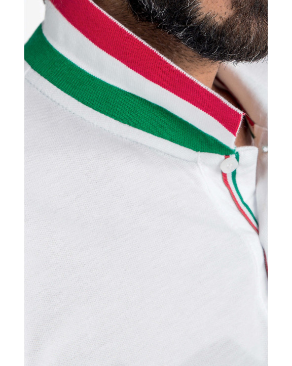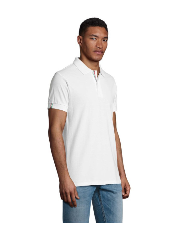 Футболка поло чоловіча SOL'S PATRIOT з коротким рукавом. Контрастна внутрішня сторона коміра. Посилена планка з двома білими перламутровими ґудзиками, контрастна смужка на планці і на внутрішній тасьмі по коміру. Декоративна двоколірна вставка на зовнішній стороні рукава і на бічних розрізах по низу вироба (зсередини). Виріб викроєн з трикотажного полотна. Приталений крій. Запасний ґудзик на внутрішньому боковому рядку вироба.