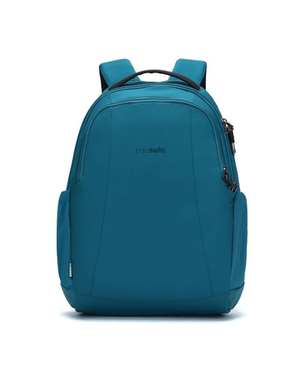 Рюкзак з системою антизлодій Pacsafe® LS350 backpack – це компактна функціональна модель з сучасним дизайном, що вміщає багато речей. Підійде для 13-дюймового ноутбука. Рюкзак має приховану кишеню з додатковим захистом для зберігання телефону та гаманця з банківськими картами. Для виготовлення моделі були використані стійкі до порізів матеріали й ремені, міцні блискавки й тканина з блокуванням RFID. Рюкзак обладнаний м’якими зручними лямками, що регулюються, має ручку, бічні кишені для швидкого доступу до пляшки з водою або маленької парасольки. Переднє й основне відділення на блискавках. Є внутрішня точка кріплення для гаманців і ключів, петля для ручки. Об’єм рюкзака – 15 л, розміри – 42 х 29,5 х 13 см, вага – 530 г. Виготовлена модель з регенерованого нейлону ECONYL, підкладка – з переробленого поліестеру. При виготовленні рюкзака були використані 6 запатентованих технологій, які створюють надійний захист від крадіжок. 1 Блокувальні кишеніз захисної тканини, яка не дає просканувати кредитку та інші документи – RFIDsafe ™ blocking pockets & material. 2 Вшита сталева сітка, що перешкоджає розрізанню сумки – eXomesh® slashguards. 3 Карабін-фіксатор для кріплення на нерухомих предметах – Turn&Lock security hooks. 4 Посилений ремінець – Carrysafe® slashguard з Dyneema®. 5 Фіксація, блокування і закриття бігунка блискавки на замок – Lockabout security clip. 6 Фіксація пулерів блискавки на замок – Zip clip. Розмір: 42 х 29,5 х 13 см Вага: 720 г Об’єм: 15 л