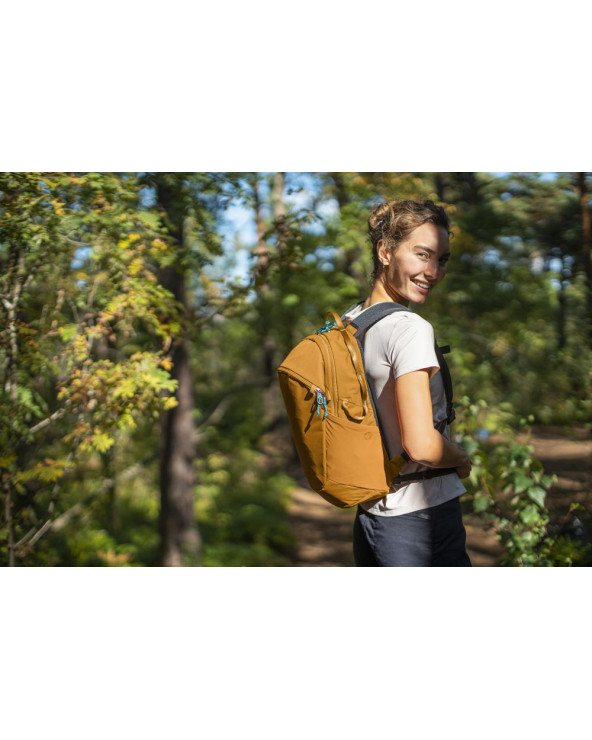 Рюкзак з системою захисту антизлодій Pacsafe® Eco 18L backpack – це екологічна модель з сучасним дизайном, обладнана стійкими до порізів ременями та блискавками. Рюкзак має два відділення, в ньому поміщається 13-дюймовий ноутбук, планшет та інші речі. Всередині є внутрішня точка кріплення для гаманців і ключів. Кишеня з блокуванням RFID призначена для зберігання посвідчень і банківських карт. Об’єм рюкзака – 18 л. Модель обладнана м’якими зручними лямками, що регулюються. Також для комфортного носіння є регульований нагрудний і знімний стегновий ремені. Наплічник має не тільки внутрішні кишені, а й дві зовнішні бічні, які призначені для пляшок з водою. Над бічними кишенями є петлі для підтримки пляшок. Зверху на рюкзаку – невелика ручка. Для виготовлення моделі використали 320D ECONYL® регенерований нейлон Taslon з водовідштовхувальними властивостями та ripstop із переробленого поліестеру 75D для підкладки. Обидва матеріали мають водонепроникність 1000 мм, без PFC. Надійний захист від крадіжок створюють 6 запатентованих технологій. 1. Блокувальні кишені з захисної тканини – RFIDsafe ™ blocking pockets & material. 2. Вшита сталева сітка перешкоджає розрізанню сумки – eXomesh® slashguards. 3. Знімна пряжка для кріплення сумки на нерухомому предметі – PopNLock. 4. Посилений ремінець – Carrysafe® slashguard з Dyneema®. 5. Система замків для блокування блискавок в одній точці – Roobar Sport. 6. Надійний замок для блокування блискавки – Securedd dock lock. Розмір: 43 х 27 х 19 см Вага: 730 г Об’єм: 18 л