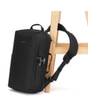 Рюкзак з системою антизлодій Pacsafe® X 13" commuter backpack – це компактна функціональна модель з сучасним дизайном, що підійде для 13-дюймового ноутбука. Для наплічника були використані стійкі до порізів блискавки. Рюкзак має два м’які відділення для ноутбука та планшета, кишеньки для ручки, телефону, кабелів тощо. Є внутрішня точка кріплення для гаманців і ключів. Кишеня з тканини з блокуванням RFID призначена для зберігання посвідчень та банківських карт. Рюкзак обладнаний м’якими зручними лямками, що регулюються, також має дві ручки. За ручку модель можна носити у вертикальному та горизонтальному положенні. Є одна відкрита бічна кишеня для швидкого доступу до пляшки з водою або маленької парасольки. На лямці облаштована невелика кишенька на блискавці для телефону. Об’єм рюкзака – 11 л. На спинці є спеціальний елемент для установки наплічника на валізу. Для виготовлення моделі використали 750D перероблений поліестер та 150D перероблений поліестер(для підкладки). Обидва матеріали мають водонепроникність 1000 мм, без PFC. Надійний захист від крадіжок створюють 7 запатентованих технологій. 1. Блокувальні кишені з захисної тканини – RFIDsafe ™ blocking pockets & material. 2. Вшита сталева сітка, що перешкоджає розрізанню сумки – eXomesh® slashguards. 3. Знімна пряжка для кріплення сумки на нерухомому предметі – PopNLock. 4. Посилений ремінець – Carrysafe® slashguard з Dyneema®. 5. Система замків Roobar Sport – блокування блискавок в одній точці. 6. Захищена вкладка zip – безпечне розміщення застібки на блискавці. 7. Стійка до проколів блискавка – ToughZip. Розмір: 37 х 26 х 10 см Вага: 760 г Об’єм: 11 л