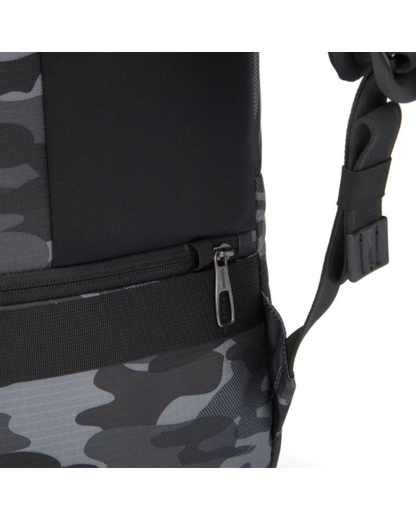 Рюкзак Metrosafe X 20L від бренду Pacsafe обладнаний надійною системою антизлодій, яка включає 6 ступенів захисту від крадіжки. Зручний і функціональний наплічник призначений для щоденного носіння та перевезення речей в подорожах та робочих поїздках. Об’єм рюкзака – 20 літрів. Модель з ідеальною внутрішньою організацією та високими стандартами безпеки. Виготовлена зі 100% переробленого поліестеру. Має 100% водовідштовхувальне покриття без PFC. Рюкзак відрізняються продуманою конструкцією. Основне відділення має кишеню блокування RFID. Також є м\'які відділення з додатковим захистом для ноутбуків та планшетів, внутрішня кишеня на блискавці. Модель підходить для iPad Pro 11" і більшості 11-дюймових планшетів у м\'якому чохлі для додаткового захисту, для 16-дюймового MacBook Pro та більшості 16-дюймових ноутбуків. Зовні рюкзак обладнаний м’якими регульованими лямками та ручкою для перенесення. Має бічну кишеню для швидкого доступу до пляшки з водою абозберігання парасольки та багажною накладкою, щоб тримати рюкзак збалансованим на колісній сумці. Використовується якісна фурнітура топрівня YKK. Рюкзак має 6 ступенів захисту: особлива захисна тканина, яка не дає просканувати кредитку та інші документи – RFIDsafe™ blocking pockets & material; вшита в тканину сталева сітка, що перешкоджає розрізанню рюкзака зловмисниками – eXomesh® slashguards; вшиті в лямки сталеві стропи, щоб не зрізали рюкзак – Carrysafe® slashguard straps; карабін для фіксації рюкзака на нерухомих предметах – Turn&Lock security hooks; система замикання блискавки – Roobar ™ sport locking system; спеціальна дуга фіксує язичок блискавки – Secure zip tab. Розмір: 45 х 30 х 13 см Вага: 850 г Об’єм: 20 л